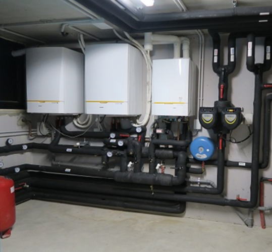 Palazzina signorile composta da 7 appartamenti in Classe "A" Centrale termica costituita da 2 pompe di calore in cascata De Dietrich da 27kW cad. e una caldaia a condensazione De Dietrich MCA 35 kW